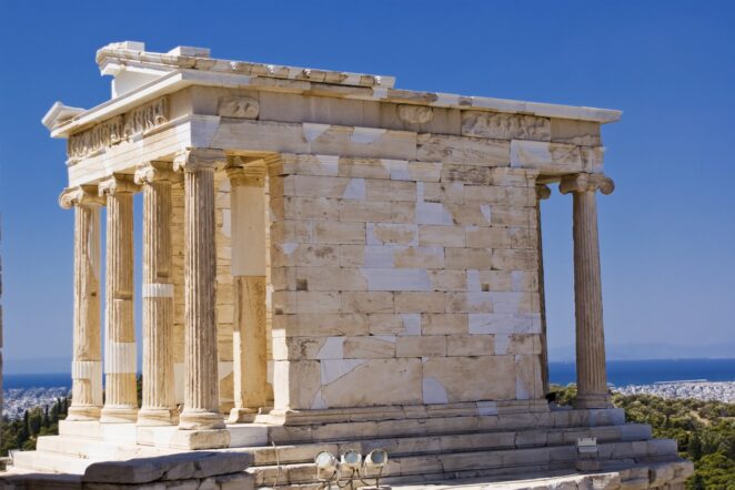 The Acropolis of Athens, often referred to as the “Sacred Rock,” is home to several awe-inspiring structures, the most famous of which is the Parthenon. Built in the 5th century BCE, the Parthenon is a Doric temple dedicated to the goddess Athena, the patron deity of the city. Its magnificent architectural design, including the intricate friezes and sculptural details, showcase the unparalleled craftsmanship of ancient Greek artisans.