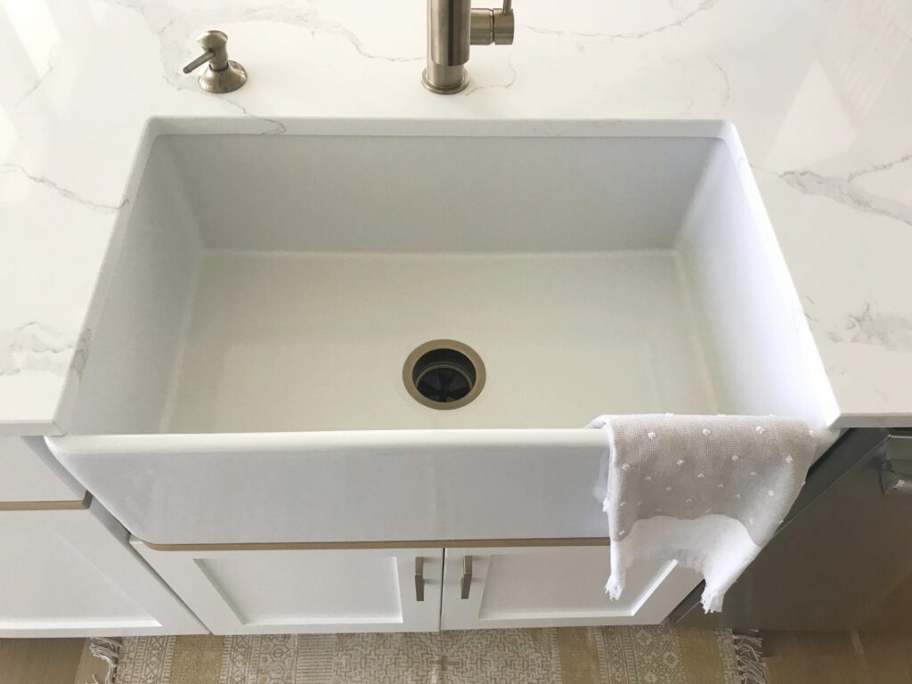 Typically, farmhouse sinks are under-mount, meaning that they don’t have the usual pre-cut openings for soap dispensers and faucets that come with drop-in sinks. So, leaving enough space behind your sink to fit a faucet is imperative if you want a good deal.