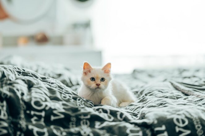 When bringing a new kitten home, it’s a good notion to have a dedicated space for your new arrival. A bedroom or even a bathroom will work wonders for this. Pop in this area a cat scratcher, a hidey-hole, snuggly bed, toys, food, water, and a litter tray. Always remember to keep the litter tray away from the food and water bowl. This will prevent your kitten from getting sick.